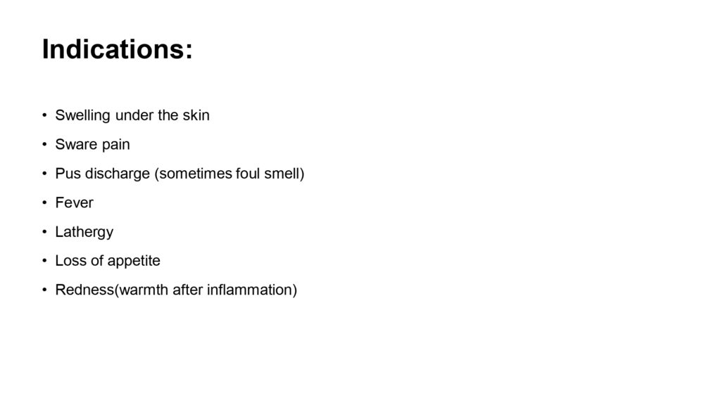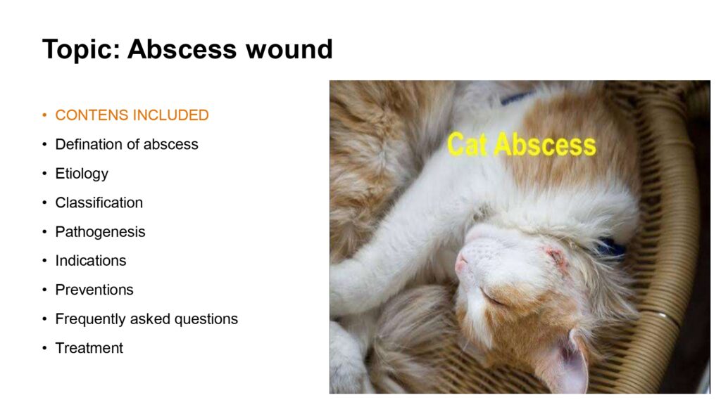 It is usually caused by bacteria and requires medical intervention for drainage and healing.This is a research PDF on the topic of abscess wounds. This is search of Dr Moazam Urooj (DVM) & Dr Asma Abbasi (DVM)