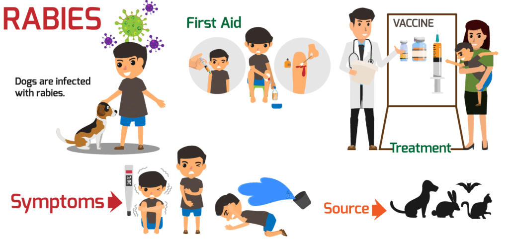 - Rabies vaccine: Series of injections to train the immune system to fight the virus.